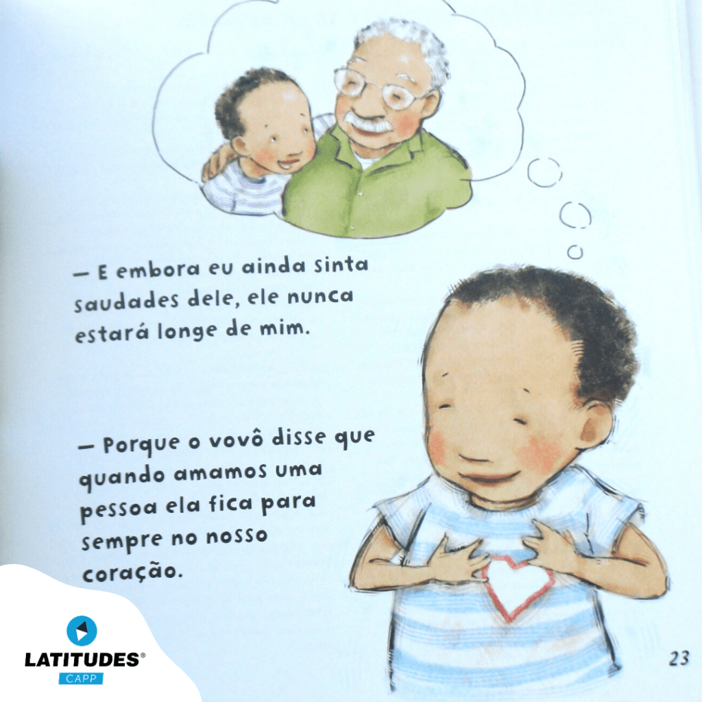 Permite assimilar o processo do luto infantil ao mesmo tempo que promove a naturalização dos sentimentos que invadem a criança como a sua integração.