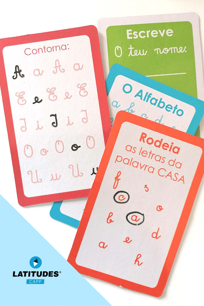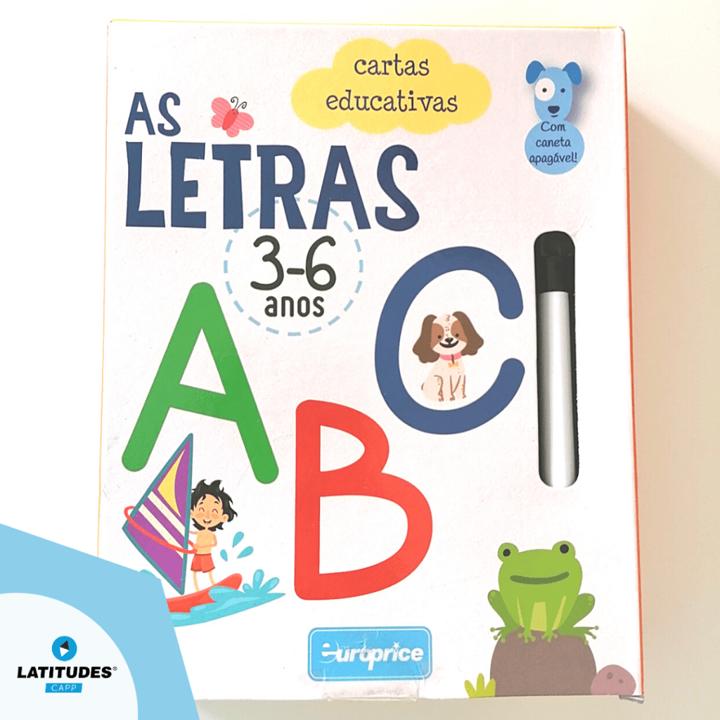 Este material é muito dinâmico, dando a oportunidade à criança de escrever as letras nas próprias cartas, por cima do tracejado, com a caneta apagável que traz incorporada. Para além das cartas com todas as letras do alfabeto, ainda inclui cartas com várias letras possibilitando formar várias palavras com as mesmas.