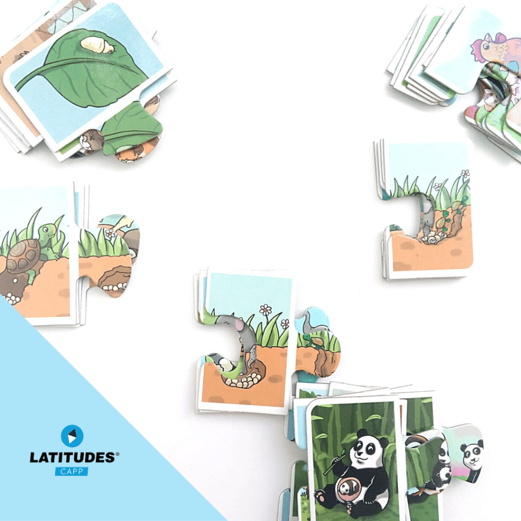 Iniciamos com todas as peças baralhadas, pedindo de seguida à criança para começar a associar cada uma das peças a um dos 14 puzzles. De seguida, inicia-se a respetiva montagem. E agora começam as várias atividades que podemos fazer com este material: