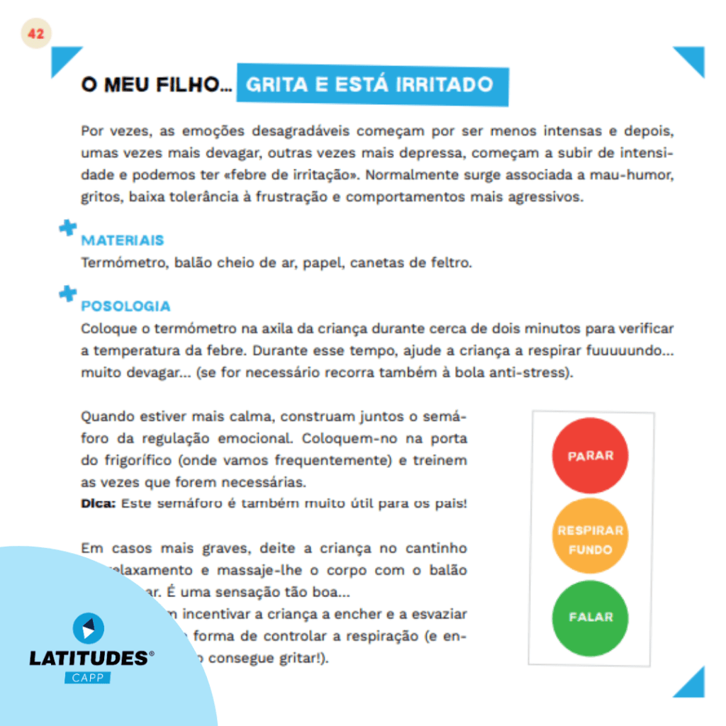Todos juntos, vamos construir uma caixa de primeiros socorros apenas com objetos caseiros! Depois temos as receitas, sempre divertidas, de como lidar com as birras, a tristeza, os pesadelos, a agressividade, o uso abusivo das tecnologias, os medos… são apenas algumas sugestões, e contamos com a criatividade de todos para inventarem novas receitas e personalizarem a vossa caixa!