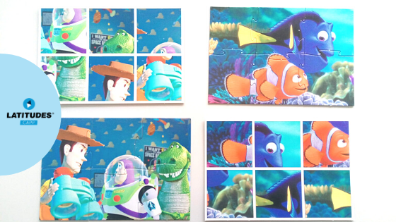 Cada puzzle está associado a um dos filmes que as crianças viram, o que facilita não só jogar como associar às diferentes temáticas que surgem nos filmes: