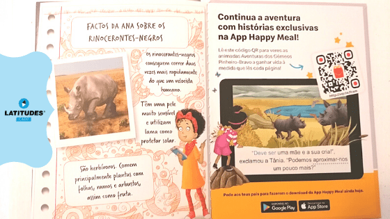 No final do livro temos um pequeno resumo das curiosidades presentes no texto sobre os rinocerontes-negros, e ainda um QRcode que possibilita o download da app Happy Meal(1), onde é possível ler diversas histórias desta coleção de forma ainda mais interativa.