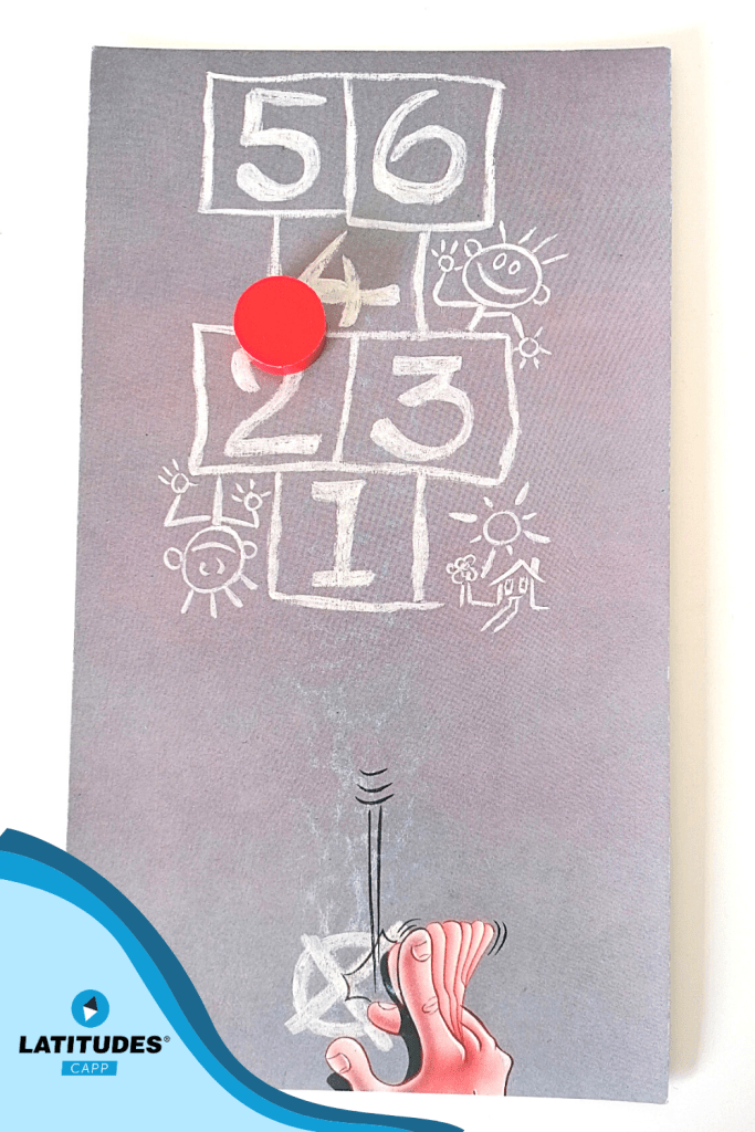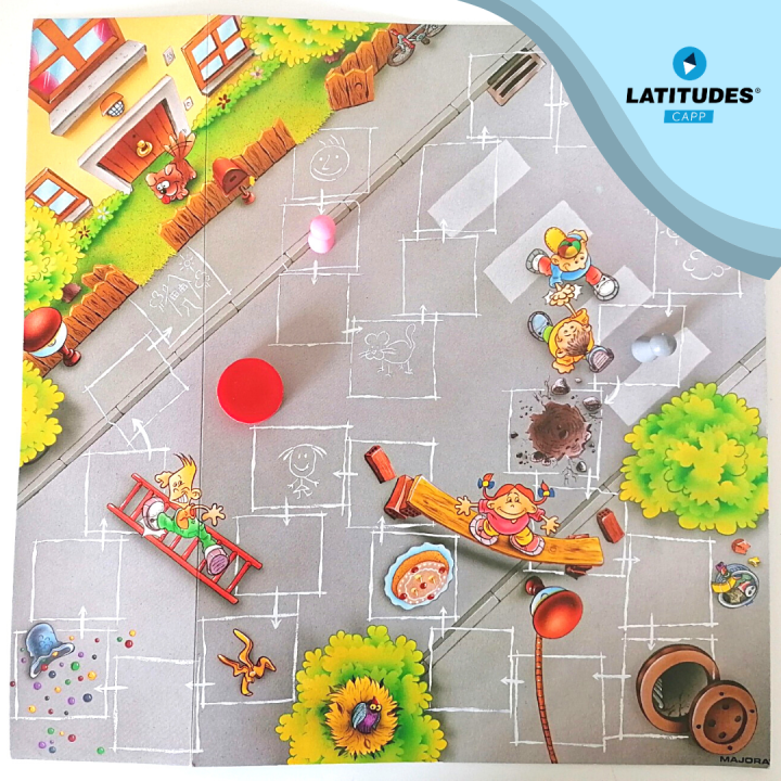 Este material por si só trabalha a motricidade fina, uma vez que não apresenta um dado mas sim uma peça que teremos de lançar e mediar a força.