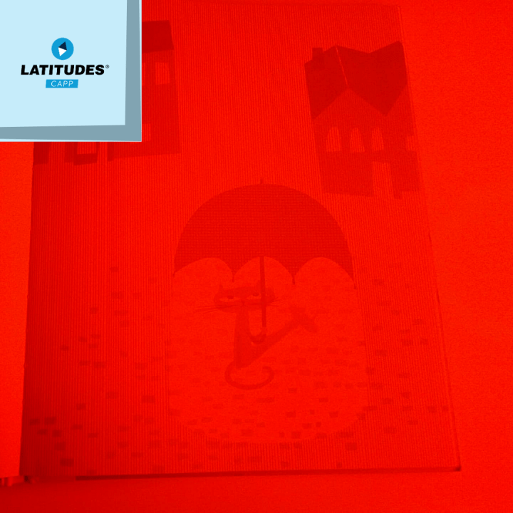 O recurso de um filtro ótico bicolor, um azul e outro vermelho, potencia a emoção da surpresa pela descoberta da imagem que corresponde à definição que figura na página contígua.