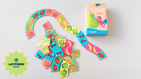 Conteúdo – 28 peças de dominó com 7 frutos diferentes.