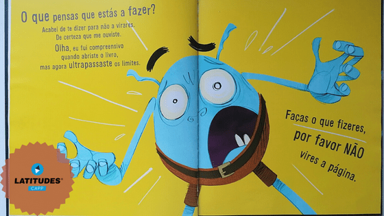 O personagem vai guiando o leitor numa aventura desafiante, na qual lhe implora que não vire a página por nada, experimentando várias estratégias como, as alterações de humor e manifestações de raiva e medo à medida que vai ameaçando com humor, o leitor.