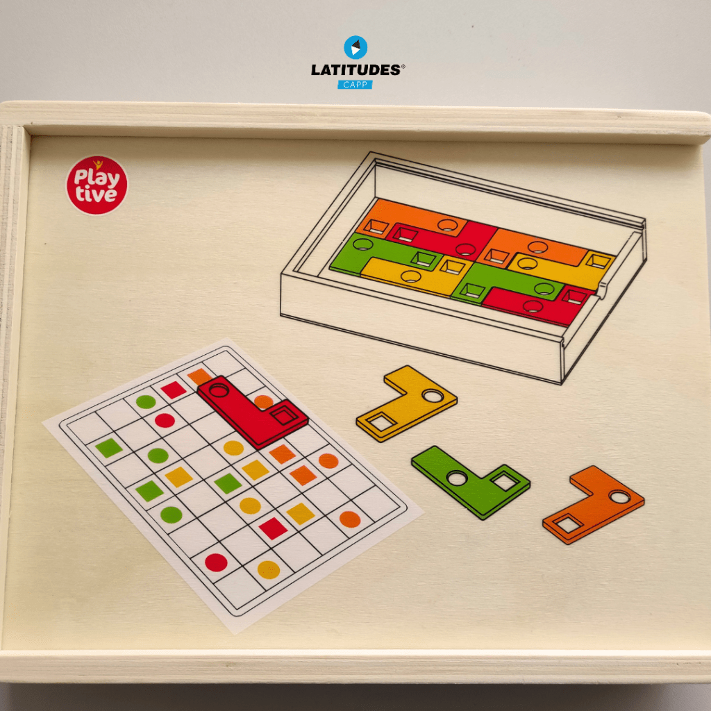 É um material visualmente apelativo, com cores suaves, de fácil utilização. As peças são de madeira, leves e de fácil manuseamento. Pode ser utilizado no dia-a-dia pelos pais para estimularem as crianças.