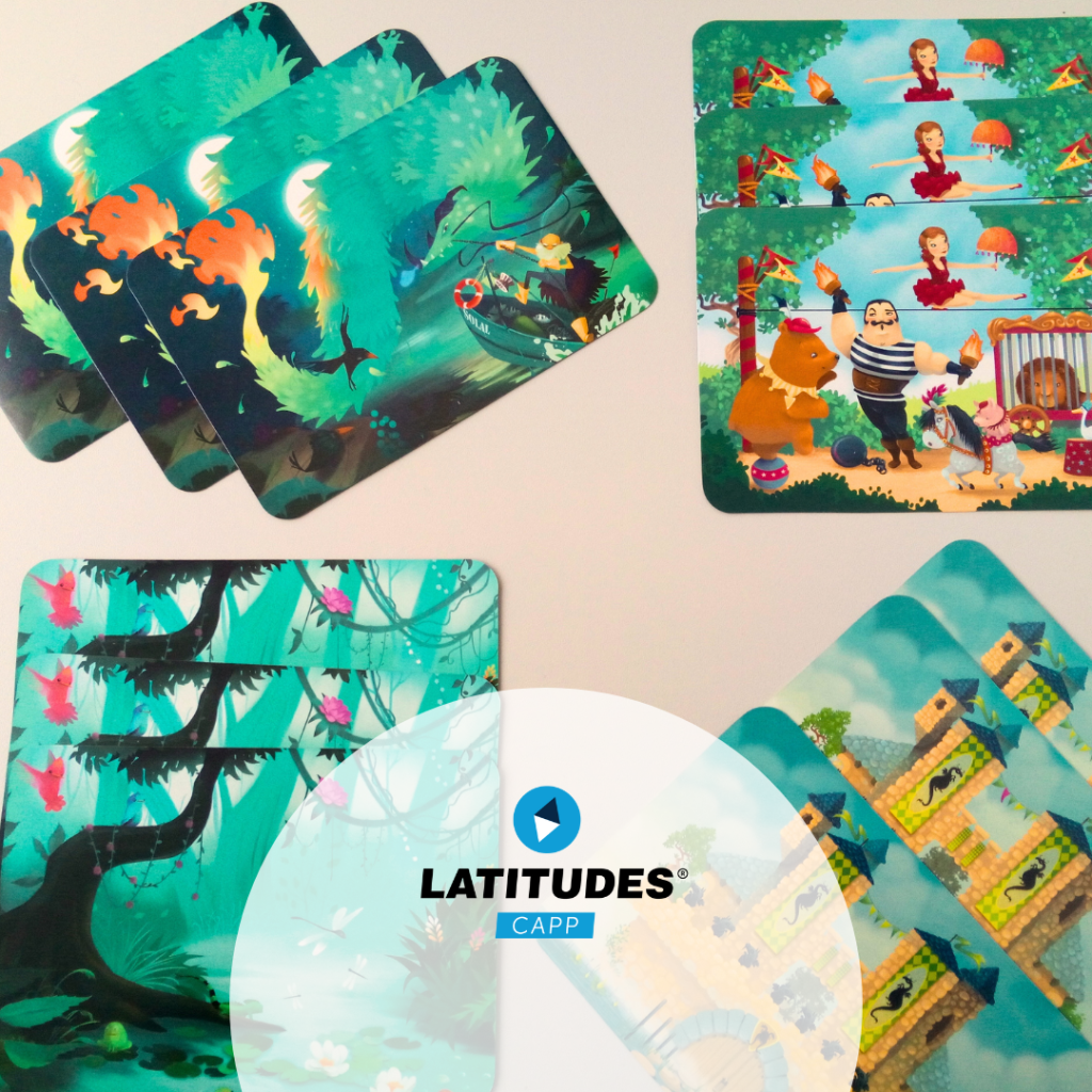 - Uma carta com uma imagem é colocada no centro da mesa e os jogadores vão receber uma variação dessa imagem.